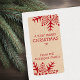Etiqueta de presente vertical de Natal de inverno com flocos de neve vermelhos, brancos, folclóricos, estilo arte folk e texto personalizável "Um Natal muito feliz para", um espaço de vazio para escrever um nome e seu nome em um fundo de aparência de papel Kraft (imagem impressa).