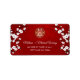 Estas etiquetas de casamento apresentam flores de cereja branca e um símbolo de felicidade dupla dourada sobre um fundo vermelho brilhante. Nomes de noiva e noiva em um roteiro clássico elegante. Combinação de terno de casamento chinês tradicional e outros produtos disponíveis.