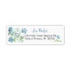 Estas elegantes etiquetas azuis de endereço de retorno floral apresentam flores azuis de cor aquosa com folhas verdes.