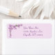 Um galho de cereja rosa bonito floresce sobre um fundo rosa enfeita os cantos desta etiqueta de endereço de retorno.