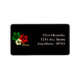 Etiqueta de endereço de 1,25" x 2,375" com uma imagem de recortes de flores de hibisco verdes, vermelhos e amarelos em preto e "México" em guião ouro (opcional). Endereço personalizável. Veja o adesivo correspondente. Veja a coleção inteira de etiquetas do México na seção OFFICE.