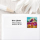 Paisagem colorida da Toscana com campos de flores e galo preto em cores amarela, fuchsia vermelha, verde, roxo, azul. Pintura acrílica na canvas.Legal, design artístico para festas de férias de Verão, reuniões familiares, aniversário, festas de aniversário ou qualquer evento que você queira!