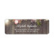 Madeira russa, flores cor-de-rosa, luzes de cordas etiquetas de endereços