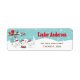 Esta etiqueta de endereço fofa ártica é uma família adorável de raposa-árctica em um cenário de inverno maravilhoso com árvores com capas de neve e um pássaro vermelho em um galho com holly. As raposas de Santa Hats adicionam um toque festivo. Ao fundo está um céu verde azul teal e flocos de neve caindo. O texto combina fontes decorativas e sans serif para um aspecto na moda e moderno. Isto é perfeito para um chá de fraldas temático de Natal, aniversário e muito mais.