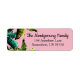 Banana de verão tropical deixa etiquetas de endereço com o nome de sua família em preto. O fundo é um rosa tropical claro.