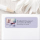 Devolva etiquetas de endereço com uma fotografia de um gatinho gengibre sentado num chapéu branco e vermelho de Santa. Luzes brilhantes turvas nos fundos.