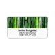 Etiquetas de endereço com um tema asiático. Uma fotografia de uma fileira de caules verdes e amarelados de bambu.