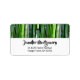 Etiquetas de endereço com um tema asiático. Uma fotografia de uma fileira de caules verdes e amarelados de bambu.