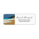 Etiquetas de endereço com uma bela fotografia que inclui um mar azul turquesa e uma praia arenosa com ondas de surf de espuma.