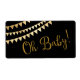 Oh chá de fraldas de bebê etiquetas de garrafa de água com faixa de ouro bonito e brilho de ouro Oh roteiro de bebê em um fundo preto. Estas etiquetas de garrafas de água chá de fraldas não são à prova de água.