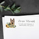 Esta etiqueta personalizada de endereço de devolução personalizada para o cão German shepherd, apresenta girassóis de cor d'água e eucalipto. Faz um presente de excelente para um dono de cachorro. Altere facilmente o estilo e a cor da fonte usando as ferramentas de modelo on-line.