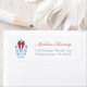 Design de etiqueta de endereço com um frasco elegante de gengibre azul e branco, com um arco vermelho festivo. Elementos pintados por mim em aquarelas antes de serem digitalizados em forma digital. Para combinar com o meu Arco Vermelho de Ginger.