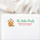 Nossas etiquetas de volta de natal da Gingerbird House são a adição perfeita aos seus envelopes de natal! Este design apresenta uma adorável casa de pão de gengibre e um homem de gengibre. A cor de fundo (mostrada em branco) pode ser alterada para qualquer cor que você queira, como vermelho, verde escuro, rosa ou preto.