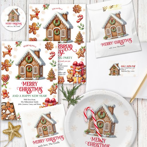 Mande o melhor durante os feriados com um doce endereço com uma casa decorada de pão de gengibre com flocos de neve claros. Este rótulo é perfeito para uma festa de decoração de casas de gengibre, correspondência de feriados, troca de biscoitos, festa de Natal, festa de Natal ou festa de aniversário de Natal. Disponível com produtos correspondentes.