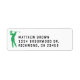 Este rótulo de endereço personalizado apresenta uma imagem de um golfista verde, adicionando um toque esportivo aos seus envios. Perfeito para os amantes do golfe, é uma maneira divertida e única de personalizar seus envelopes ou pacotes. Ideal para o noivo ou qualquer golfista, este rótulo adiciona um toque de personalidade a qualquer correspondência.