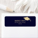 Esta etiqueta de endereço de retorno de graduação azul e Dourada do Marinho moderno oferece uma maneira sofisticada e elegante de personalizar sua correspondência de graduação. O fundo do marinho profundo fornece uma canvas rica para o ícone impressionante da tipografia e do boné de formatura de ouro, criando uma impressão polida e memorável. Estas etiquetas são uma forma na moda para celebrar a sua conquista e são perfeitas para acrescentar um toque de classe para agradecer notas, convites e muito mais.