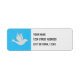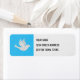Use esta etiqueta de correio com seus Cartões de natal de Partilha de Dove Branca. Apresenta o mesmo design gráfico de papel de corte manual que os Cartões de natal com a pomba branca sobre um fundo azul.