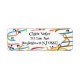 Essas etiquetas de endereço de retorno têm uma design moderna do século médio de rabiscos rodando verticalmente em cores retrógradas com estribos pretos e círculos espalhados sobre a design.