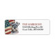 O lado esquerdo destas etiquetas de endereço de retorno apresenta um retrato de aquarela de um belo cão de Miniatura Schnauzer Terrier colocado sobre um fundo de resmungação da bandeira dos EUA. Seu texto personalizado está em vermelho e preto correspondente à direita.