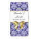 Miniretiquetas de vinho do casamento elegantes, prontas para você personalizar com suas próprias informações. Tendy iris blue e white cor damasco, na parte superior e inferior do rótulo, com uma área de texto branca, no centro, bordada em ambos os lados com uma linha de tom dourado, e um arco de tom dourado, na parte inferior, da área de texto. O texto é perfeitamente personalizável para atender às suas necessidades de casamento. Excelente para a sua mesa de recepção de casamento ou vinhos de presente.