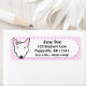 Estas adoráveis etiquetas de endereço Bull Terrier têm um fundo cor-de-rosa. Um Bull Terrier branco de desenho animado está à direita, e você pode personalizar instantaneamente o nome e endereço encontrados à direita. Produtos muito bonitos para amantes de animais de estimação em Menagerie Mayhem.