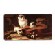 Pintura de uma mãe e seus gatinhos brincando com um violão