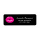 Etiquetas de endereço com desenho de um par de lábios femininas rosadas e brilhantes em fundo preto.
