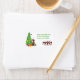 Nessas etiquetas de endereço de retorno está uma imagem de um adorável cachorrinho de chocolate Labrador Retriever vestindo um chapéu de Papai Noel vermelho e branco. O filhote está sentado entre pacotes de presentes envoltos ao lado de uma árvore de Natal decorada. Um pássaro toucinho está pousando na árvore. Seu texto personalizado fica verde à direita da imagem, e o texto estilizado na parte inferior diz MERRY CHRISTMAS".