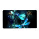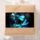 Duas libélulas turquesa transparentes, luminosas e artisticamente desenhadas em um fundo noturno com algas luminosas no lago e vagalumes. Libélula brilhante.