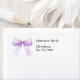 A lavender colored bow. Personalize and add your name and address. Black letters.