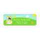Este rótulo de endereço bonito e caprichoso apresenta um filho de cabelo preto com pele clara num suporte de limonada amarela que é decorado com flores e beliche. Ao fundo está um céu azul, sol e borboletas. O texto combina fontes decorativas e sans serif para um aspecto na moda e moderno. Isto é perfeito para uma festa de aniversário de verão. Gráficos de MUJKA