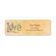 Adicione um toque de cor e amor ao seu envelope ou pacote quando o seu otimista Rótulo de Endereço de Retorno com Letra Mão de "Amor" Quente Retornar. Whimsical "Love" Hand Lettering é um design divertido e criativo criado por Debi Payne Designs para aqueles que gostam de manter sua mentalidade positiva. Cada letra da palavra "Amor" é criada por múltiplas linhas que têm vários padrões preto e branco incorporados às linhas. As linhas são acentuadas com espirais e pontos. As letras são criadas usando as cores de rosa, cor, laranja e verde para dar à palavra uma paleta de cores interessante. Este design pode ser personalizado para adicionar qualquer nome ou texto desejado. A palavra "Amor" é colocada sobre uma colagem de ouro em colagem de colheita suave em camadas de fundo.