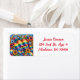 Bandeiras do orgulho LGBTQIA+, flores e arco-íris devolvem etiquetas de endereço.