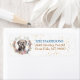 O lado esquerdo destas etiquetas de endereço de retorno apresenta uma imagem de uma coroa de primavera em cores de rosa mole, azul, dourado, verde e creme. No centro está um retrato de um adorável Cão Lhasa Apso. Pequeno confete de ouro dá um brilho sutil ao fundo. Seu texto personalizado está em ouro azul e marrom à direita.