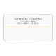 Etiquetas modernas de envio com um design simples com seu nome comercial e duas linhas de texto para seu endereço de devolução em uma fonte de sans serif preta, sobre um fundo branco. Uma linha fina de ouro divide o espaço abaixo onde você pode escrever manualmente o endereço do seu cliente. Um design minimalista que ainda aparece como chic e na moda. Estas etiquetas de envio são uma forma excelente de adicionar um toque profissional aos seus pacotes.