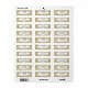Estas etiquetas de endereço de retorno têm uma design moderna do século médio feita de cinco linhas verdes e um retângulo dourado arredondado com um retângulo laranja arredondado repetido na design.