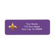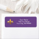 Estas etiquetas de endereço de retorno elegantes têm um lírio de ouro sobre um fundo roxo.