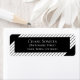 Texto Branco sobre Pinstripes preto-e-branco sobre fundo preto As etiquetas de endereço personalizadas sofisticadas de retorno apresentam um design elegante com sabor geométrico incluindo uma borda de pinstripes numa diagonal em volta de um retângulo preto com na moda branco mas com letra de texto digna, e apenas para acrescentar interesse, dois dos cantos de pinstripe são pretos. Claro, para impressionar. Personalize-o alterando qualquer uma das imagens, cores, fontes, etc., e, claro, o nome e endereço.