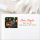 A sweet Christmas return address labels with a little kitten playing with a gold ornament on the Christmas tree.