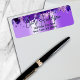 Design de etiqueta de endereço de retorno personalizada moderna, com pinceladas de pincel em tons de roxo e faíscas em um fundo metálico roxo. O texto é totalmente personalizável. Para alterá-la, use a opção Personalizar. Para obter mais alterações, como alterações na fonte, cor da fonte ou layout de texto, use a opção Editar design.