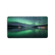Foto da paisagem de Luzes Nortes verdes (Aurora borealis) refletindo em um fiorde no norte da Noruega, Escandinávia. Local: Storfjorden, Skibotn.