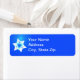 Apresenta uma estrela fractal branca de David num fundo azul. O mesmo design pode ser encontrado em convites e cartões.