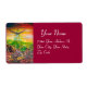 Pintura acrílica colorida e vibrante em verde, amarelo alaranjado, roxo, castanho vermelho, cores brancas de 2009, Duelo entre Bradamant e Negromcer em seu grifão com asas enormes. Orlando Furioso, Canto 2 escrito pelo poeta Renascentista italiano Ludovico Ariosto 1516 .