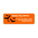 Etiquetas adesivas de Halloween. Personalize com seu nome e endereço ou texto escolhido. Apresenta um grupo de morcegos negros voando no céu na noite de Halloween. Meio assustador. Feliz Dia das Bruxas, juntamente com o seu nome e endereço estão escritos em branco sobre fundo laranja. Um design divertido para os seus cartazes ou como autocolante durante o feriado. Para outros usos, como produtos de panificação, doces ou bolsas de Dia das Bruxas, basta listar seu nome, ou de Os Johnsons, etc., e alterar o tamanho do texto, se necessário.