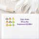 Estas etiquetas de endereço de retorno têm um design de Mardi Gras de fleur de lis alinhado através do design com diferentes designs.