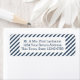 As faixas diagonais azuis escuras retornam a etiqueta do endereço para elogiar nossos convites para a cadeira de adirondack.