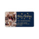 Marinho moderno e Dourado Floco de Neve Foto Feliz Natal Script Natal Feriado Rótulos de Endereços de Regresso de Natal Feriado. Apresenta um roteiro "Feliz Natal", uma foto de família, flocos de neve sobre fundo azul marinho. Excelente para a época natalícia, fácil de personalizá-los com seus nomes e retornar informações de endereço.