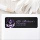 Etiquetas de endereço com uma máscara de mascarada intrincada em um fundo de cinza escuro.