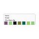 Padrão geométrico linear, retangular, listrado de matizes pretas, roxas e verdes.