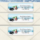 This charming Christmas return address label features Santa and his trusty red-nosed reindeer partner leaning against a police car topped with a festive Christmas tree. A wonderful Christmas illustration to decorate your Christmas mail.